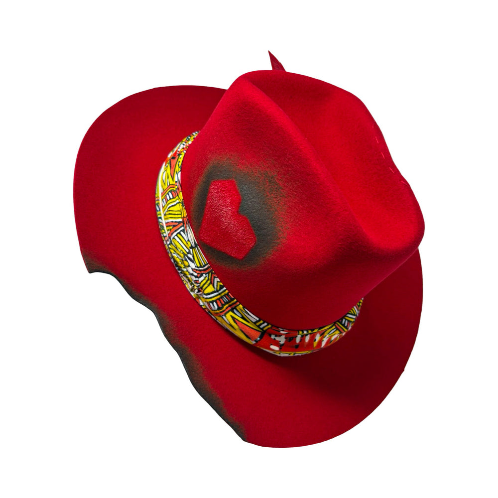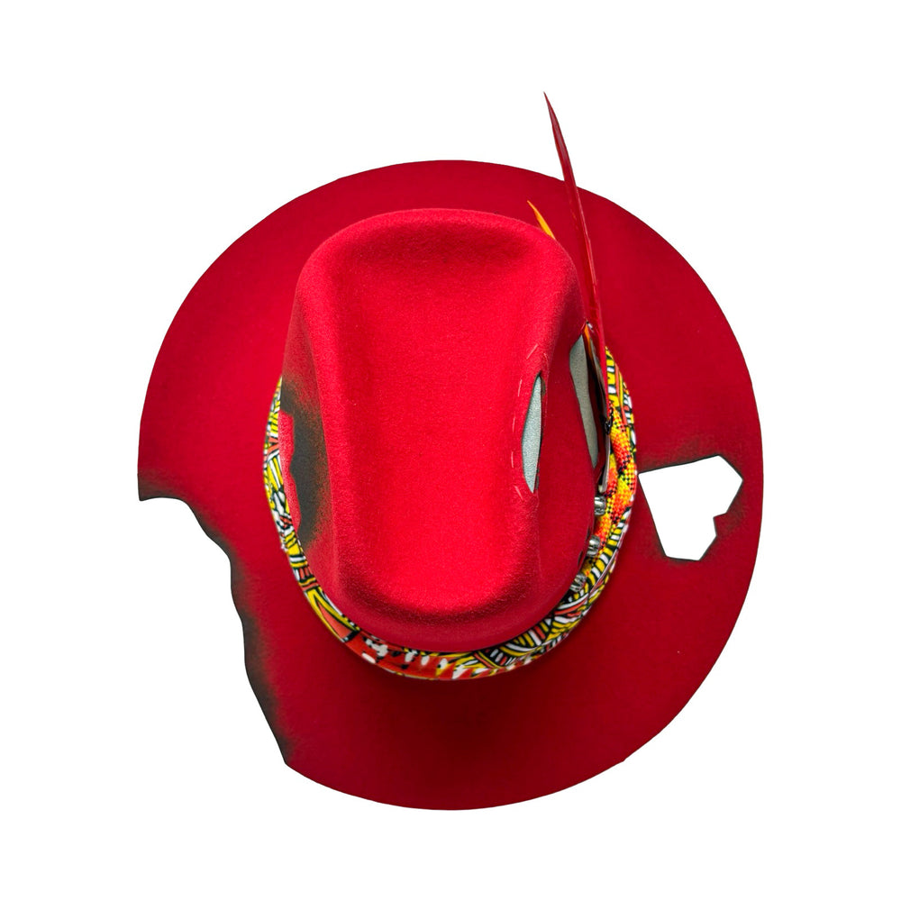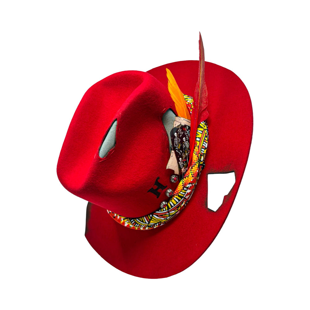 Introducing The Wildheart, a blazing red cowboy silhouette crafted from 100% Australian Wool and designed for the souls who move through life with equal parts fire and feeling. Inspired by the untamed bravado of Yosemite Sam, this piece carries that same bold confidence — but refined through the lens of Hatrimony’s modern craftsmanship.